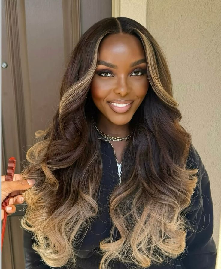 ZSF Ombre Brown Blonde Highlight Body Wave Human Hair Lace Frontal Wig Middle Part Brazilian Hair