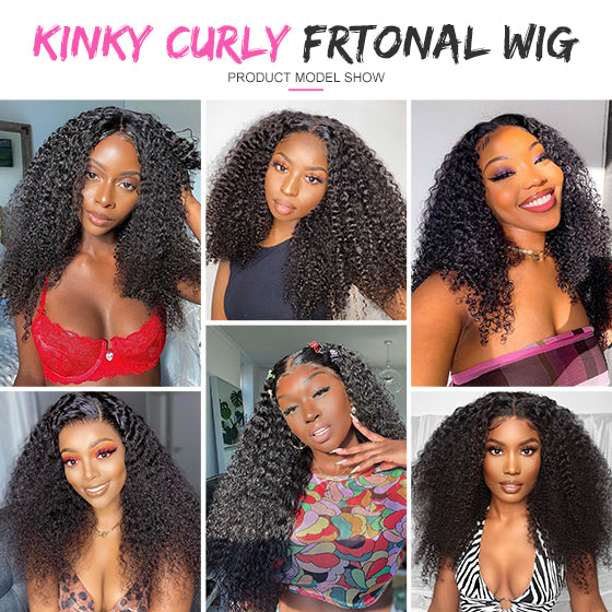 ZSF HD 13*4 Lace Frontal Wig Kinky Curly Virgin Hair Human Hair Natural Color