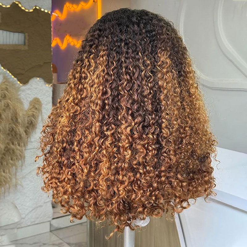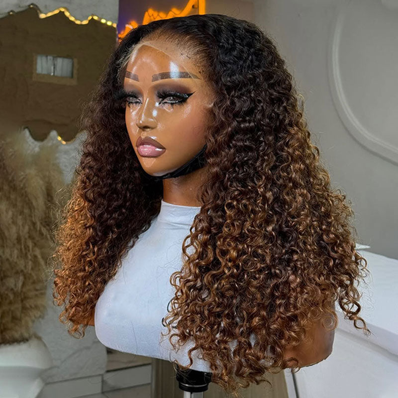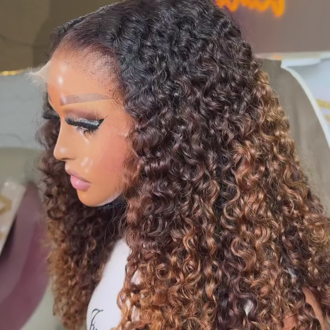 ZSF Brown Dark Blonde Burmese Curly HD Lace Wig Natural Hairline Middle Part Natural Hairline One Piece