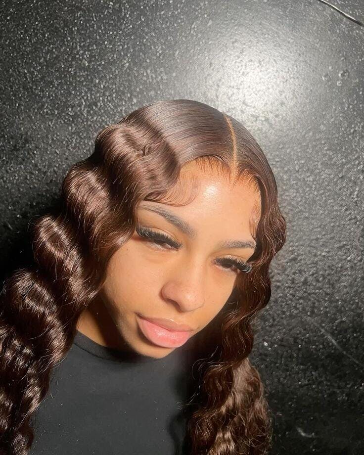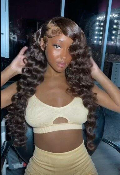 ZSF Dark Brown 2# Loose Deep Wave Lace Wig Middle Part Brazilian Human Virgin Hair