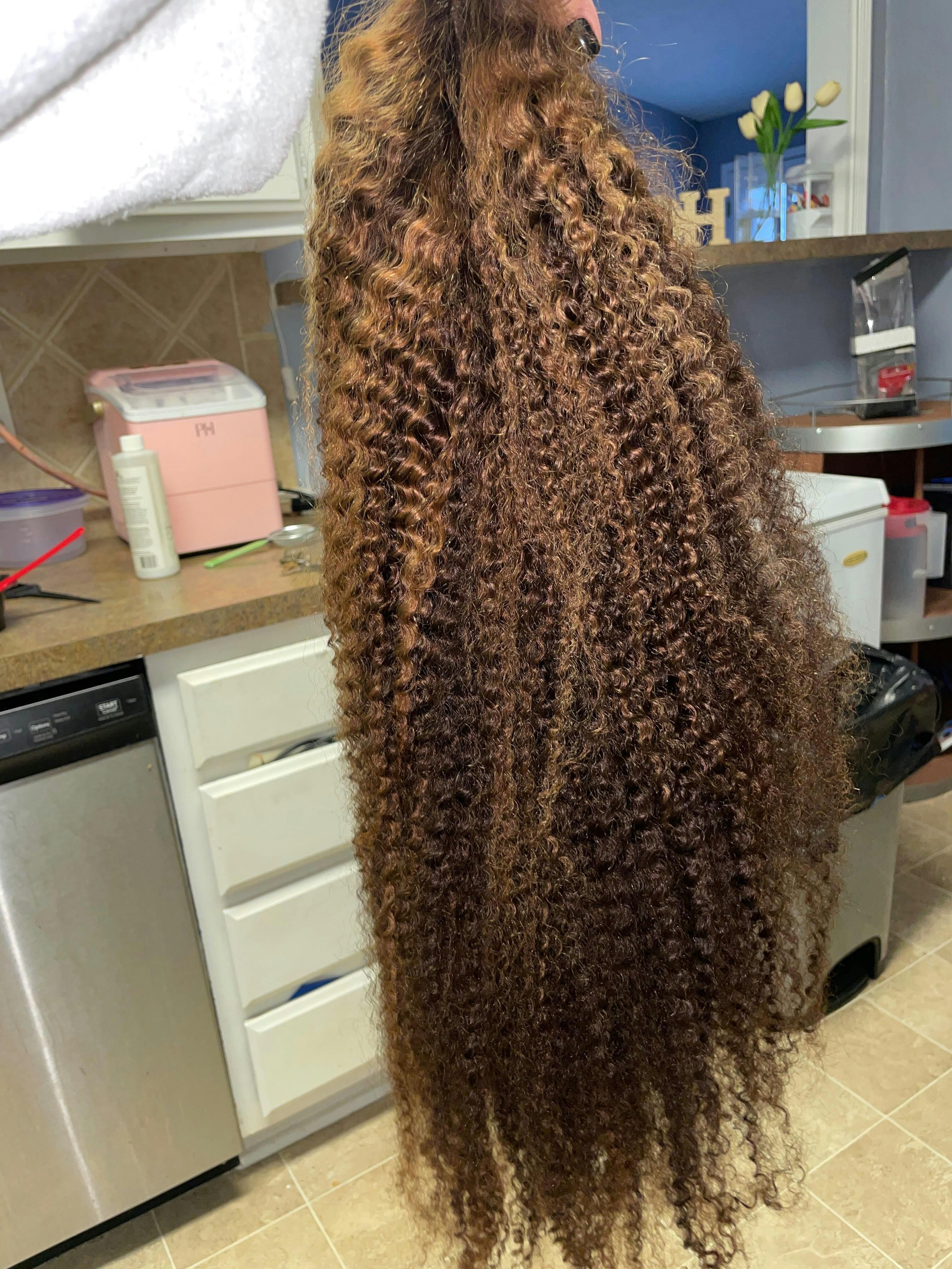 ZSF Hair 4/27# Highlight Brazilian Kinky Curly Lace Wig Natural Hairline 1PC