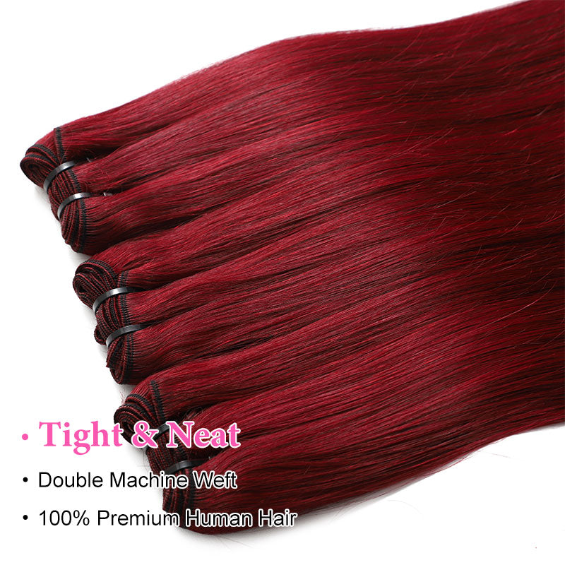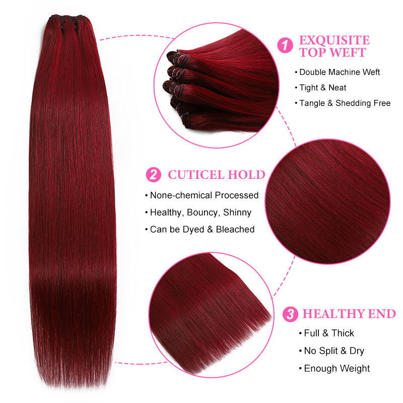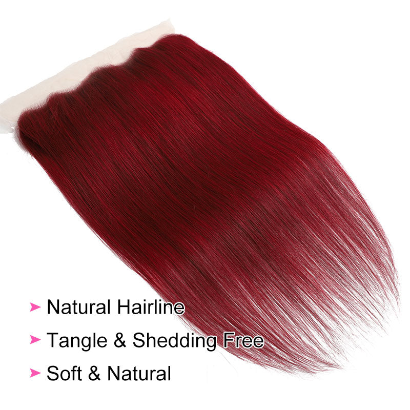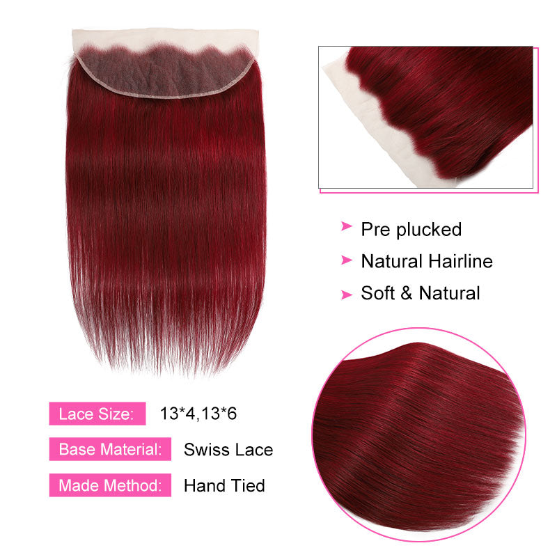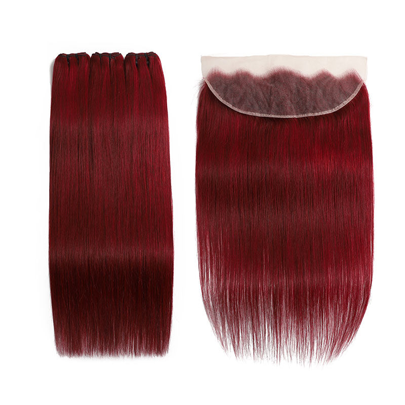 ZSF Red Wine 99j Straight Hair 3Bundles With Lace Frontal 100% Virgin Human Hair