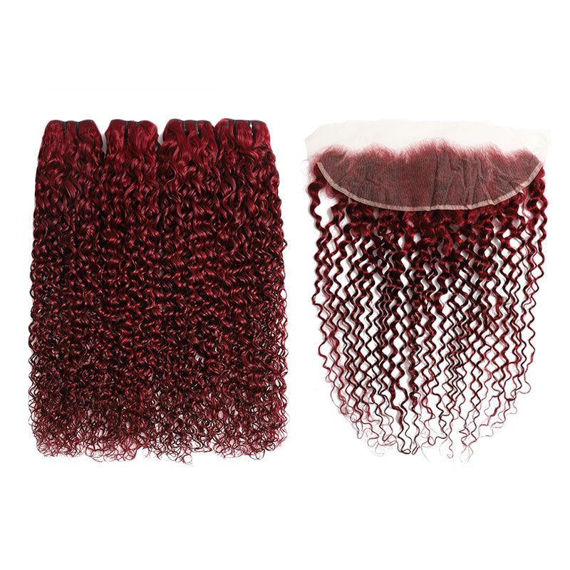ZSF Red Wine 99j Water Wave Human Hair 4 Bundles With Lace Frontal Virgin Hair