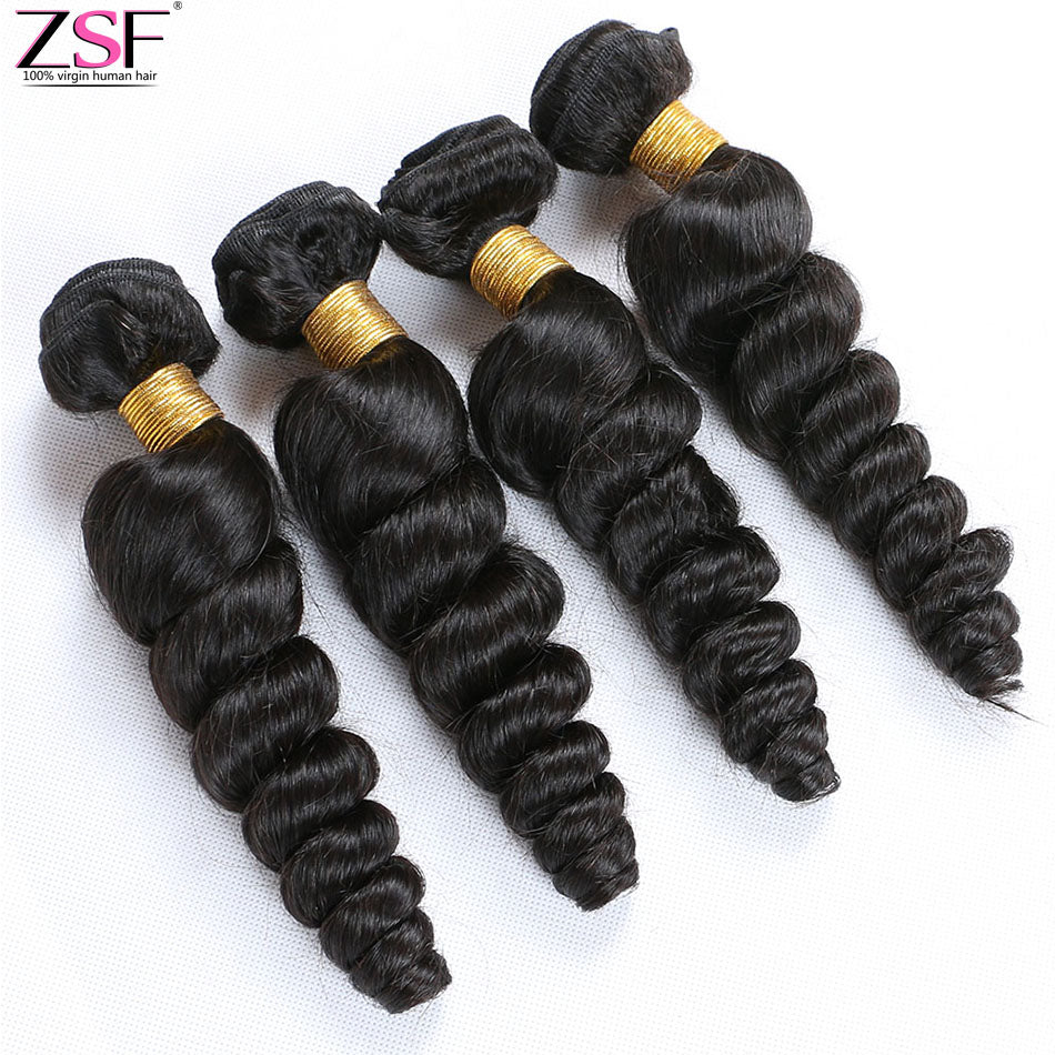ZSF 10A Grade Loose Wave Virgin Hair 4Bundles With Lace Frontal 100% Human Hair Natural Black