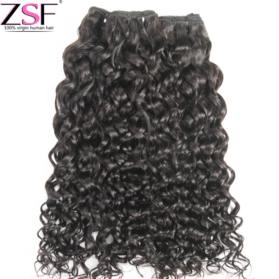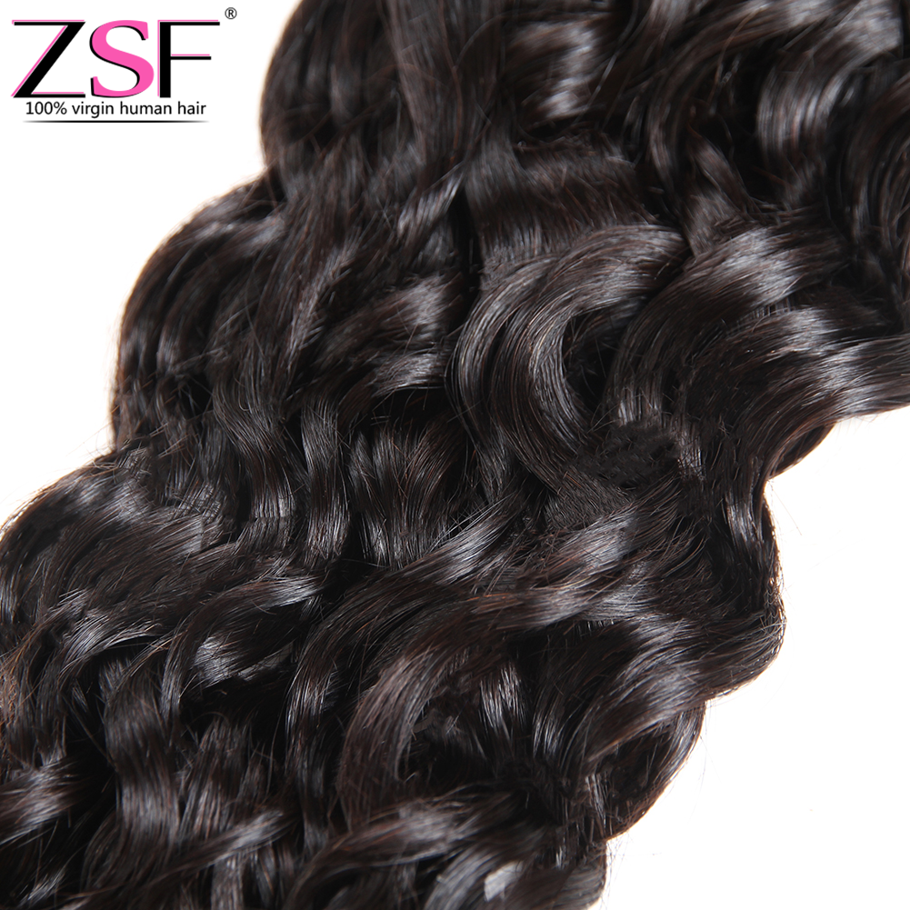 ZSF 10A Grade Water Wave Virgin Hair 4Bundles With Lace Frontal 100% Human Hair Natural Black