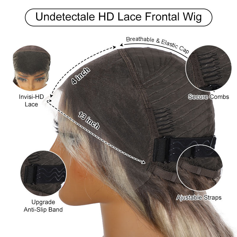ZSF New In Blonde Highlight Mix Grey Brown Body Wave Lace Frontal Wig C Part Human Hair