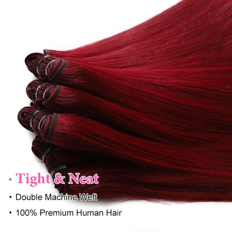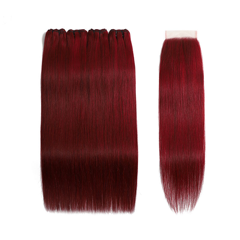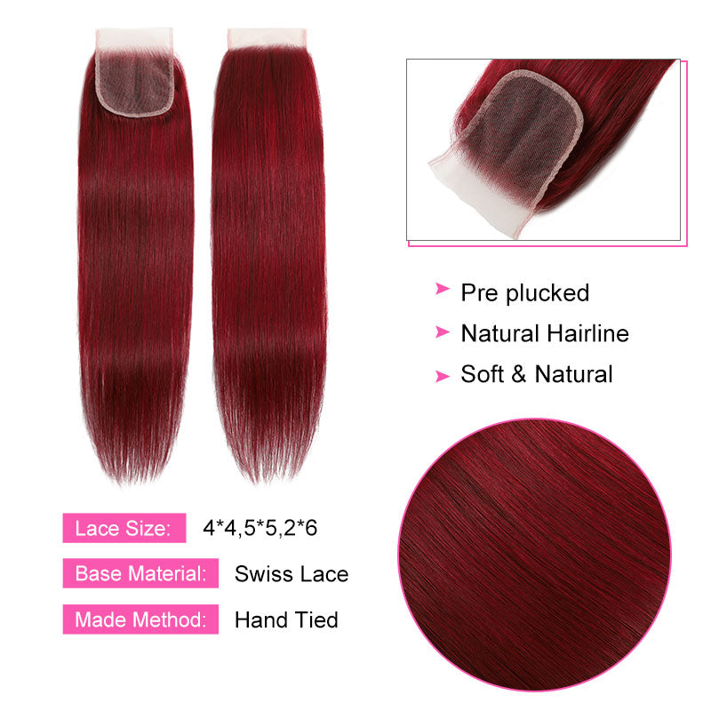 ZSF Red Wine 99j Straight Virgin Hair 4Bundles With Lace Closure Human Hair