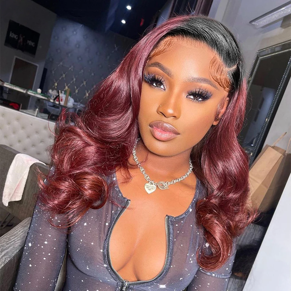ZSF Ombre 1b/99j Body Wave Wavy Lace Colored Hair Human Virgin Hair One Piece