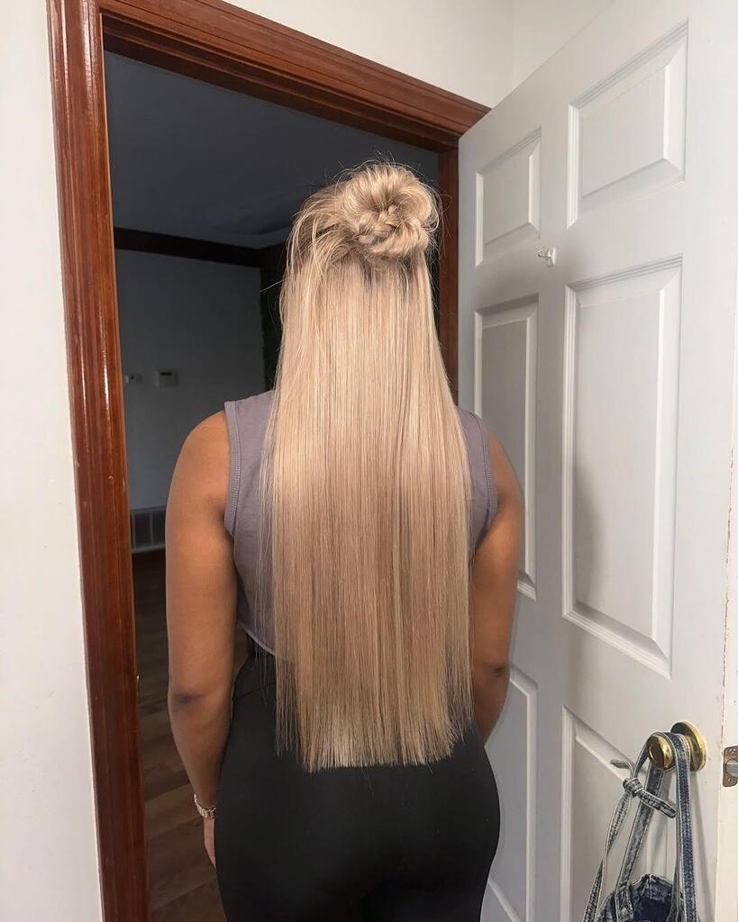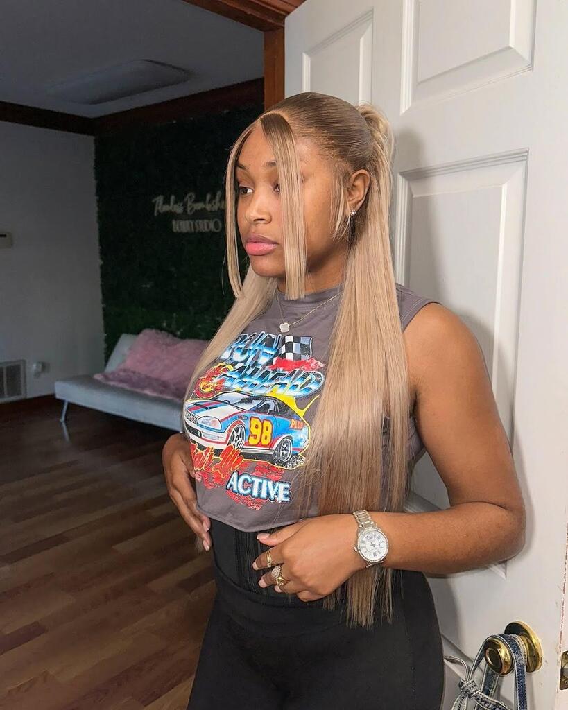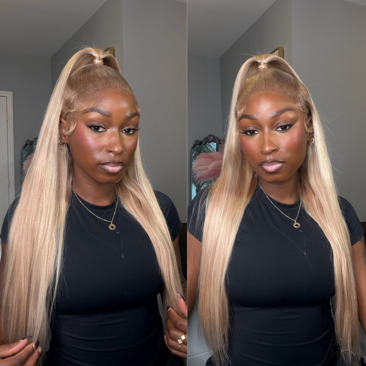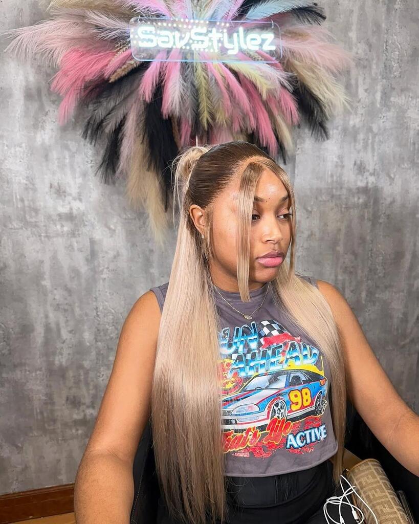 ZSF New In Ash Blonde Ombre Dark Root Straight HD Lace Frontal Brazilian Human Hair Wig
